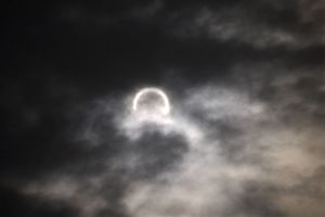 雲の間に。金環にはメガネが必要だった |